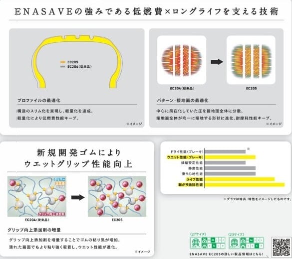 エナセーブブランドの強みである低燃費性能とロングライフ性能を維持しながらEC204よりウエット性能を6%向上
